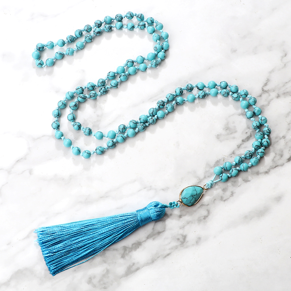 I was searching for something that felt more connected to nature, something that was both beautiful and meaningful. That's when I found the Natural Blue Pine Stone 108 Mala Beads Long Necklace.